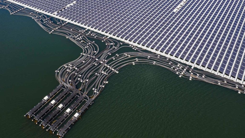 Panel surya terapung memanfaatkan permukaan air seperti waduk dan bendungan.
